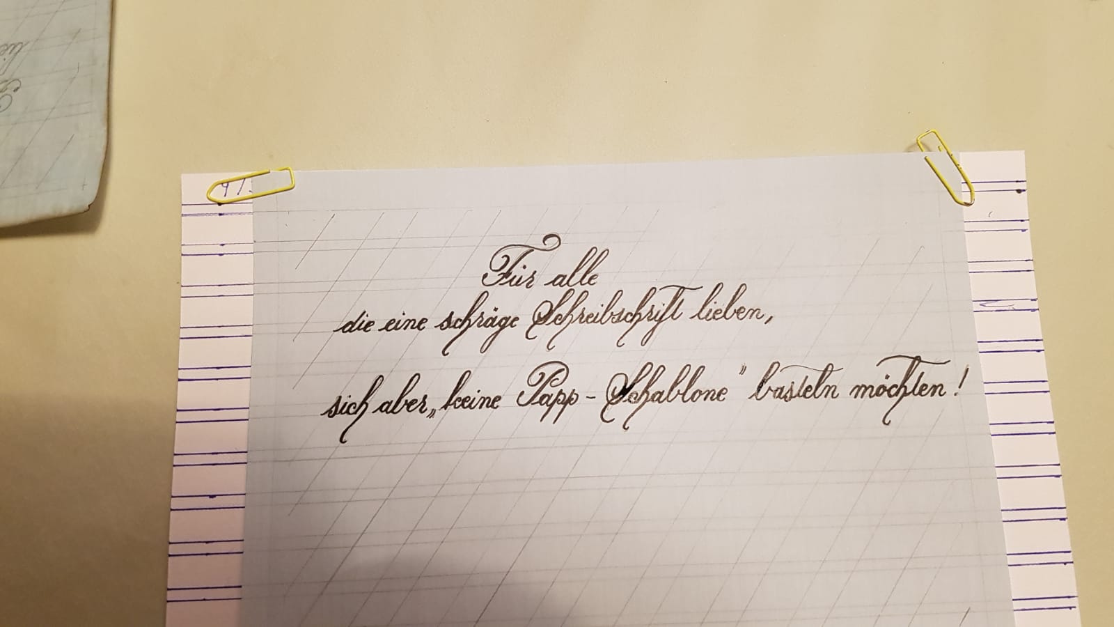 Die Führungslinien sind hilfreich für die Anglaise oder Copperplate Kalligrafie / Schrift (alte Englische Schreibschrift). Die Schablone kann man auch prima auf Briefumschlägen anwenden.